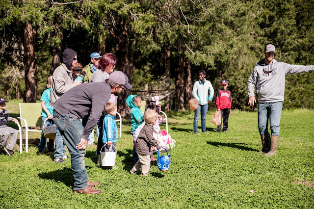 Last year we took full advantage of our front field of dreams & began the tradition with friends and family of an Annual Easter Egg Hunt & Brunch...complete with the kids {& adults, this year} reading The Easter Story.