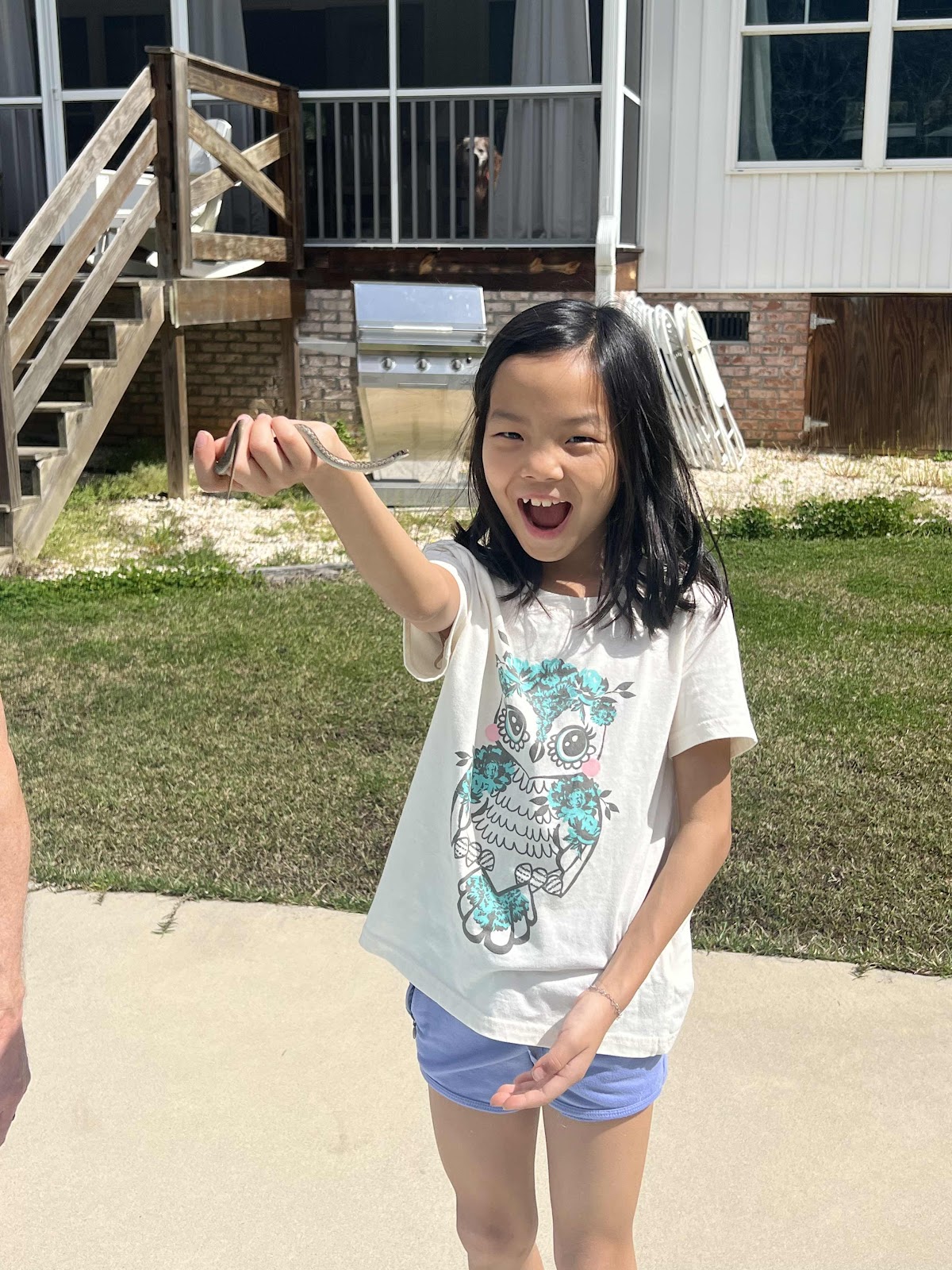 AJ held her first snake!