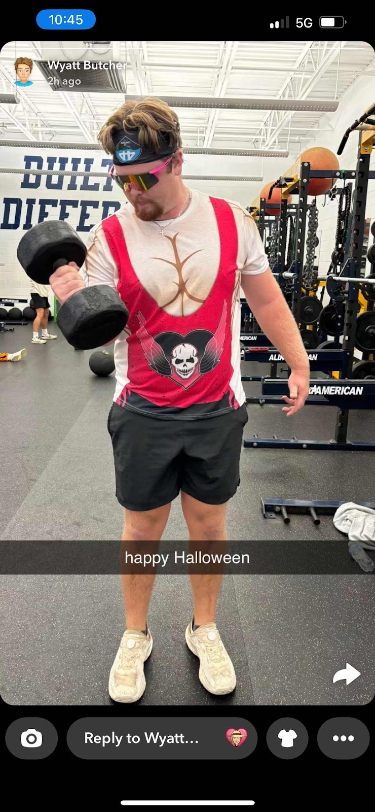 Bubba in costume for his weightlifting at school bright and early! Those guys are a hoot!