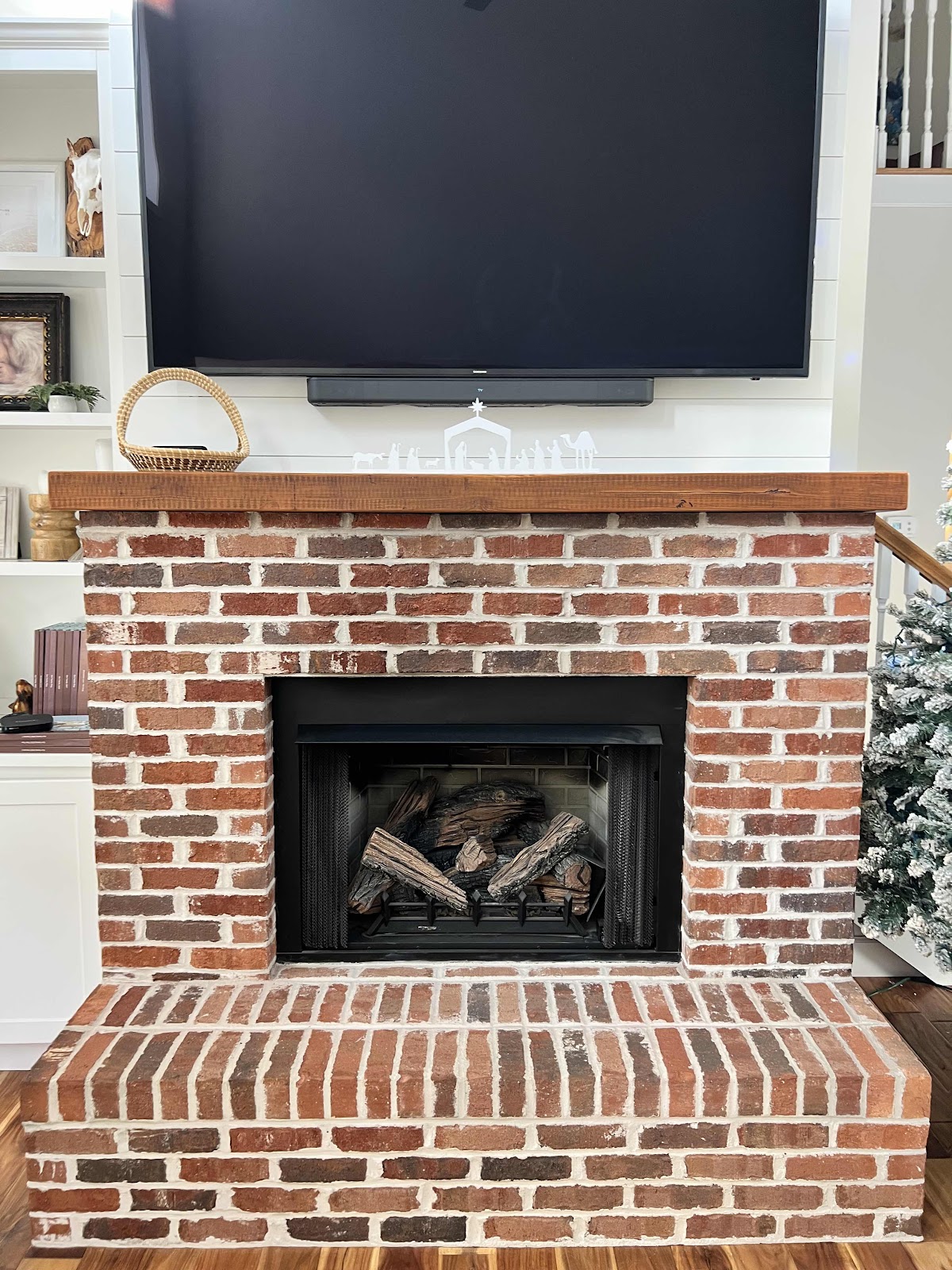 We all absolutely LOVE it! It isn't such an eye sore anymore. It's a long story but when we were building, Scott and I both tried to explain over and over and with photos to our builder and mason what we wanted in the foundation and fireplace. Let's just say they didn't understand the assignment. The fireplace was a little bit better than the foundation but still not what we wanted. Maybe I can figure out how to fix the tile grout on the kitchen backsplash next. haha!